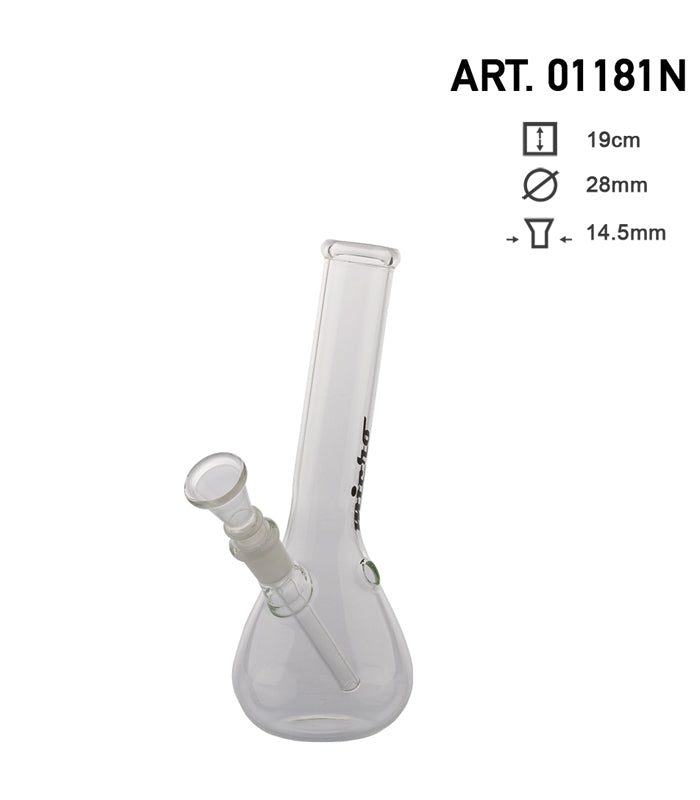 Die Micro Bouncer Hangover Glass Bong ist ein kleines, aber äußerst effektives Rauchgerät, das sich perfekt für mobile Anwendungen eignet. Diese Bong bietet durch das kompakte Design und die robuste Glasverarbeitung ein angenehmes Raucherlebnis. Mit einer Höhe von 19 cm und einem 14,5 mm Schliff ist sie sowohl funktional als auch leicht zu transportieren. Die Bong hat einen gebogenen Hals, der zusätzlichen Komfort beim Rauchen bietet, während der Beaker-Basis Stabilität gewährleistet. Das integrierte Kickloch sorgt für eine bessere Kontrolle des Luftzugs.